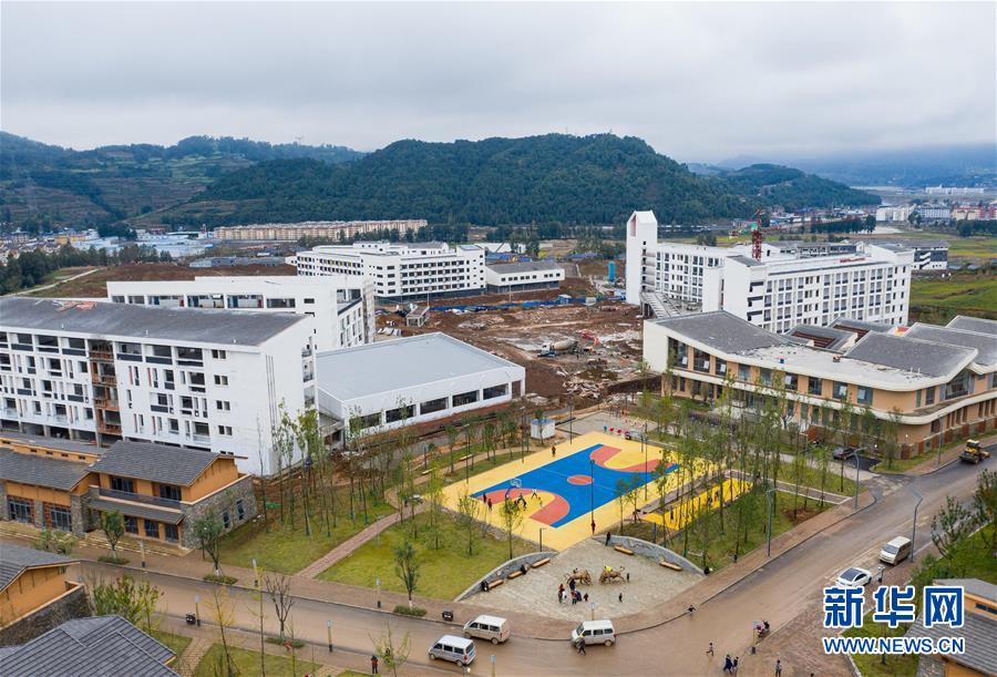 俯瞰昭觉县易地扶贫搬迁县城集中安置点沐恩邸社区卫生院、中心校、便民服务中心等配套设施(10月13日摄,无人机照片)。 位于四川省大凉山腹地的四川省昭觉县,是全国最大的彝族聚居县,也是四川省深度贫困县中贫困人口最多的县。经过近几年的努力,脱贫攻坚取得明显阶段性成效,彝区面貌发生历史性巨变。截至2019年底,全县实现136个贫困村退出,15506户70434名贫困人口减贫。 新华社记者张笑宇摄