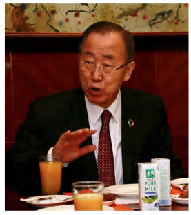 (左图为大会嘉宾、联合国第8任秘书长、博鳌亚洲论坛理事长潘基文,右图为大会嘉宾现场品尝金典新西兰纯牛奶)