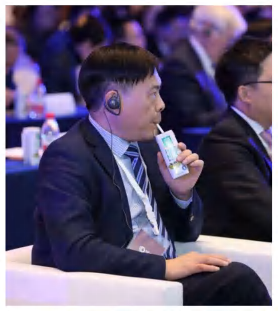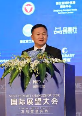 图为伊利集团副总裁张轶鹏在杭州参加国际展望大会开幕式演讲(新华社记者 周懿摄)