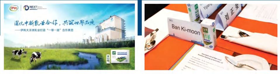 联合国第8任秘书长潘基文等政要为伊利集团和金典有机奶背书站台。伊利集团大洋洲乳业项目作为国际合作中的智慧实践案例获颁“金马灯”荣誉大奖。此次会议集合了部长级以上的领导17位,司局级以上的领导40余位。新西兰5名部长级政要、4名市长、50多家重要企业出席国际展望大会(杭州2018)。有力地提升了伊利集团的国际化形象。