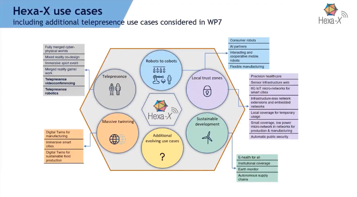 目前,Hexa-X已有较多应用案例,这些案例可以归类为五个大集群,合作机器人便是其中一个较大的应用领域。韩斌指出,传统的远程技术还不够方便,因此,在虚拟层面,我们致力于让人和机器相互合作,让机器人进化成合作机器人,以此实现一种人与人面对面坐在一起的效果。他进一步介绍到,合作机器人的应用场景不限于工业,还涉及消费者产品,它们能够成为人们的AI合作伙伴,能够实现真正意义上的人机互动。
