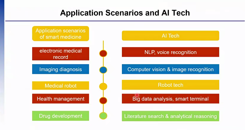 在辅助影像诊断的应用场景中,顾永川教授分享了Diagnosis系统,通过对大量皮肤病病例的医药数据收集分析,结合临床医生对数据结果的判断及标注,构建出一套可临床应用辅助影像诊断系统。同样,因为AI技术在图像识别领域的良好应用,国内也涌现出众多AI技术公司。